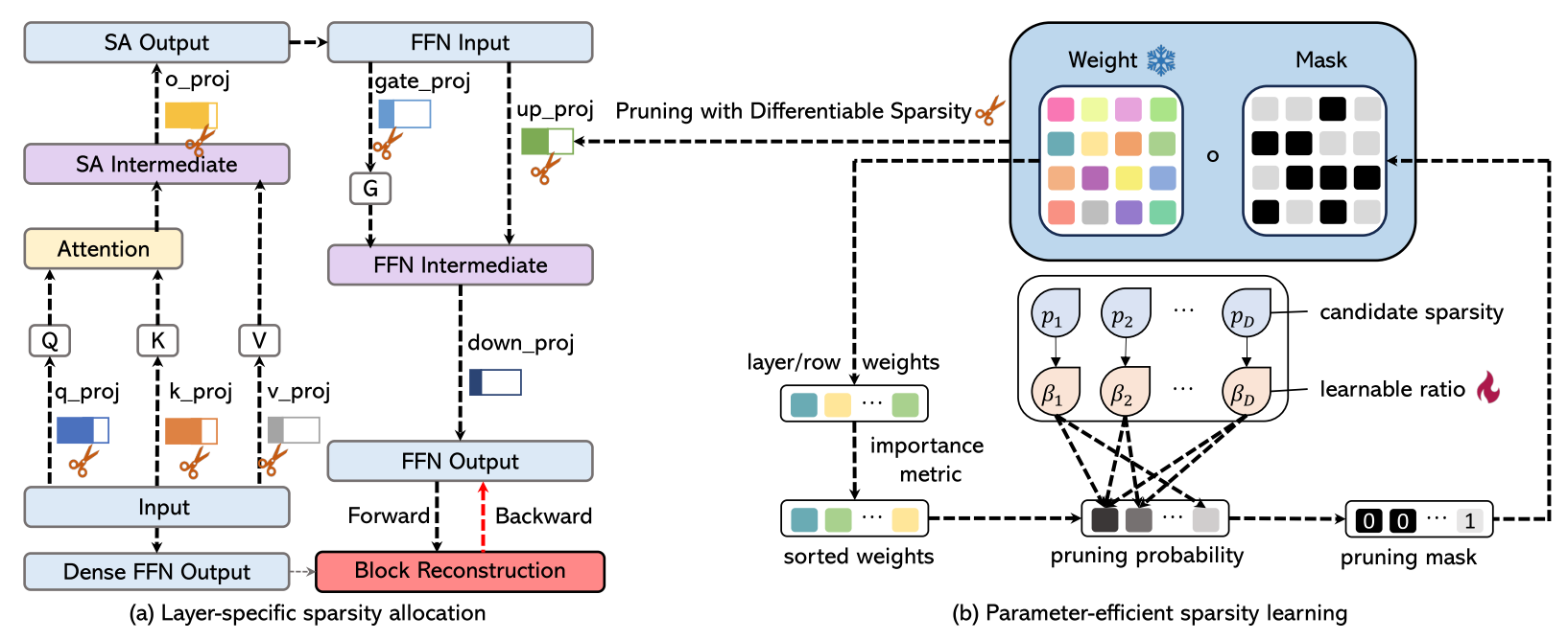 Besa: Pruning large language models with blockwise parameter-efficient sparsity allocation