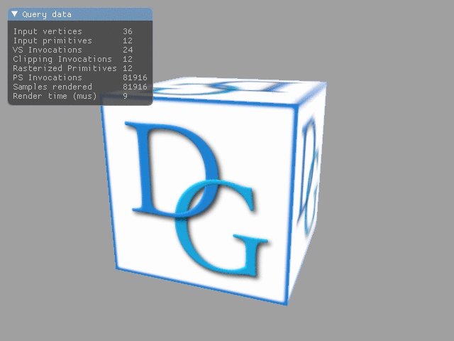 This tutorial demonstrates how to use queries to retrieve various information about the GPU operation, such as the number of primitives rendered, command processing duration, etc.