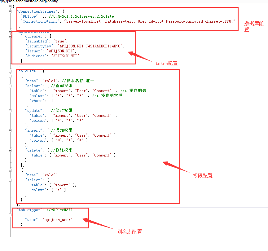 4.数据库支持(0:MySql,1:SqlServer,2:Sqlite,3:Oracle,4:PostgreSQL) APIJSON.NET文件夹下appsettings.json 设置对应数据连接
