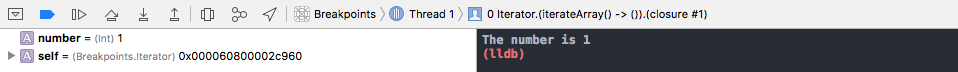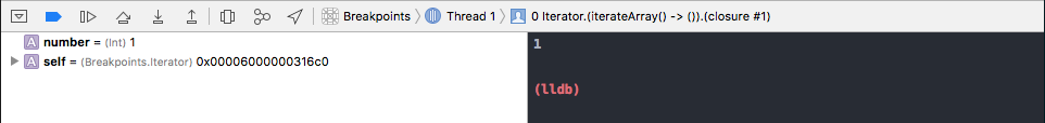 We can run a lldb command in the debug console—like po number to dump the value of number: