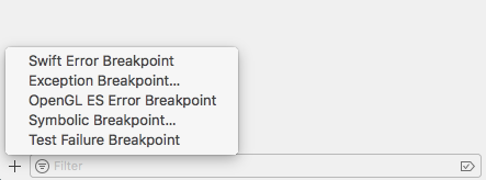 At the bottom of this view there is a + button which allows us to add several generic breakpoints: