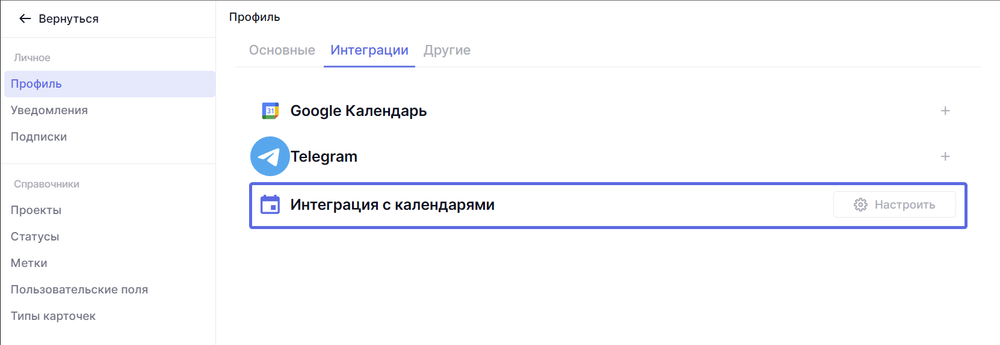 Для этого в вашем профиле доступна настройка интеграции с календарями.