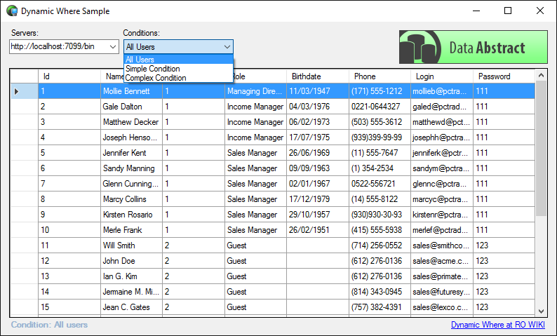 When the sample is run, if an instance of Relativity Server is running on the local machine then the "All Users" Dynamic Where clause will be used to to retrieve all the "User" records from the "Users" table.