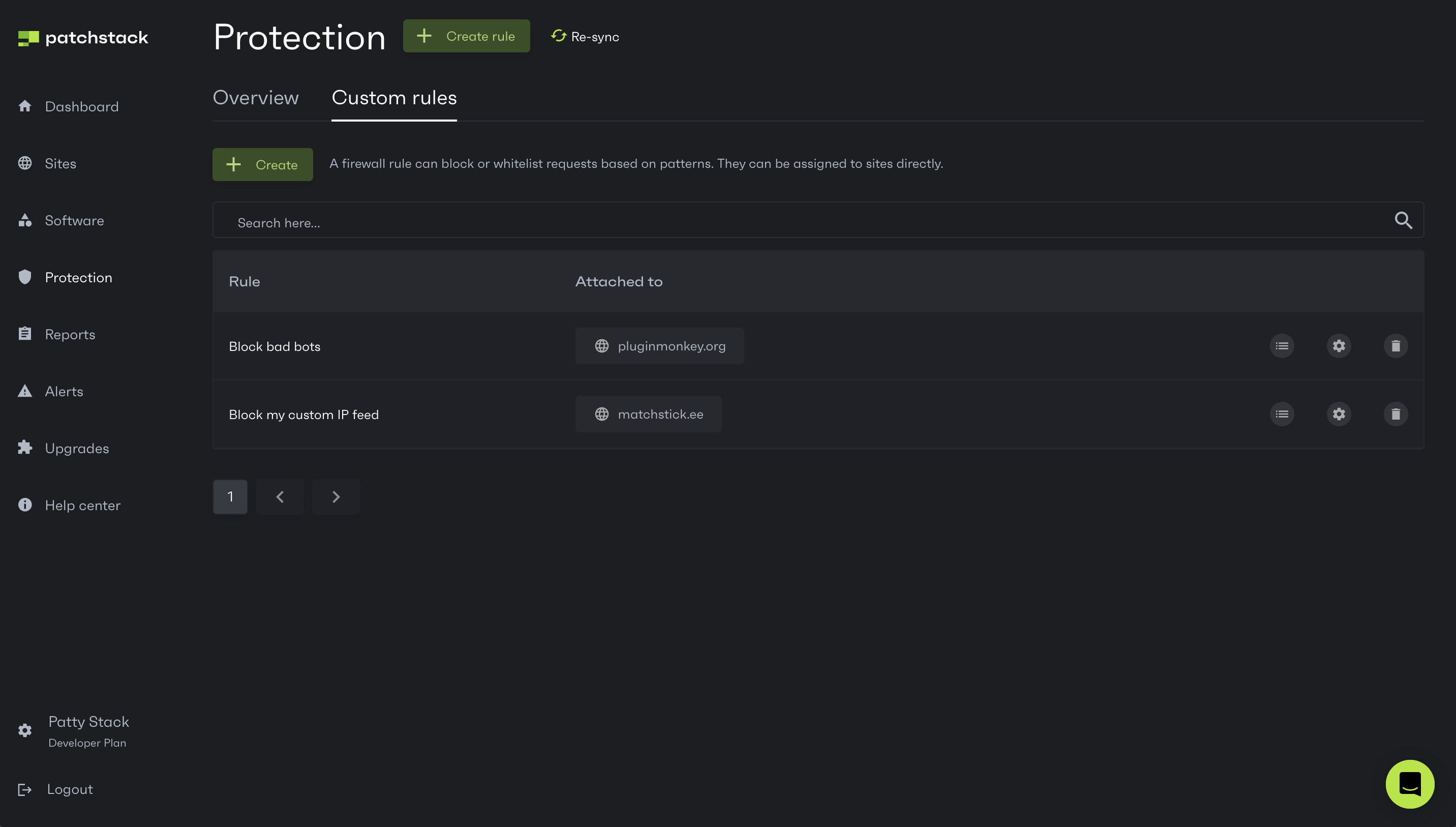Note that after creating and attaching the custom firewall rule to your site, it may take some time before it takes effect. Alternatively, you can initiate a manual re-sync between Patchstack App and your site, by clicking on Re-sync button at the top of this page.