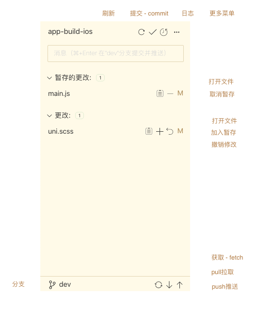 源代码管理器视图主要功能如下: