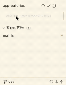 git commit 提交代码 如下图所示: 源代码管理器视图,输入框内,输入消息,点击输入框上面的√, 即可完成提交。 提交成功后,底部状态栏↑数量+1 Git 命令扩展: 1$ git commit -m <message>