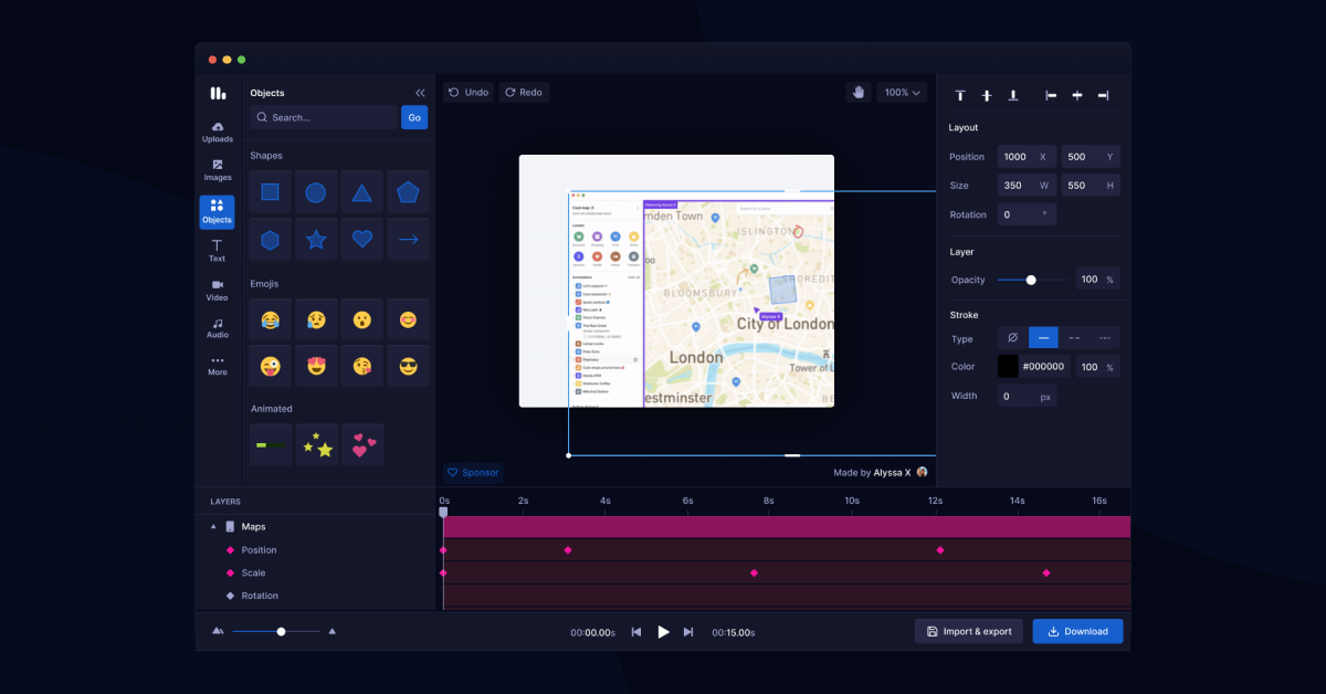 Motionity is a web-based motion graphics editor designed for everyone, allowing users to create animated videos for free. This open-source tool is perfect for individuals looking to bring their creative ideas to life, whether they are professionals or beginners. With Motionity, users can easily create engaging animated content without extensive video editing experience.