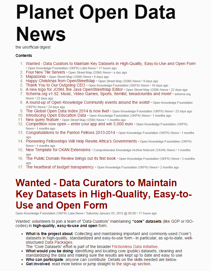 3) generate a planet web page, that is, planet.html using the blank template pack in your working folder using all feed entries from the local database.