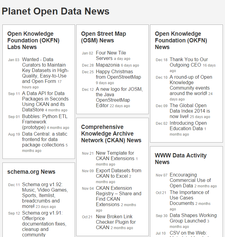 For more planet configuration samples or real world setups (with live planet news sites) see the Planets repo. Samples include: