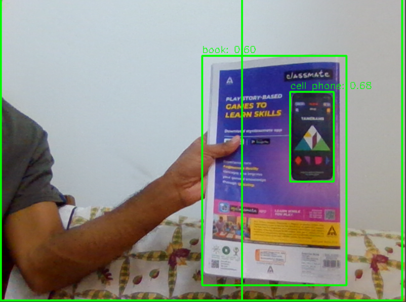 This folder contains a Python script for a real-time object detection application using the YOLOv9 model from Ultralytics. The application uses the default camera (webcam) for video input and displays detected objects with bounding boxes, including labels of the detected object and their probability.