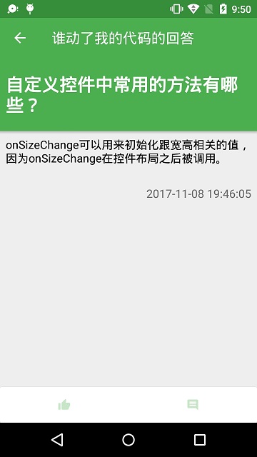 点击问题详情中的回答条目AnswerItemView,进入回答详情AnswerDetailActivity,在问题详情界面AnswerItemView中的回答可能展示不全,回答详情界面展示回答所有内容,并且在底部可以对回答进行点赞和评论。