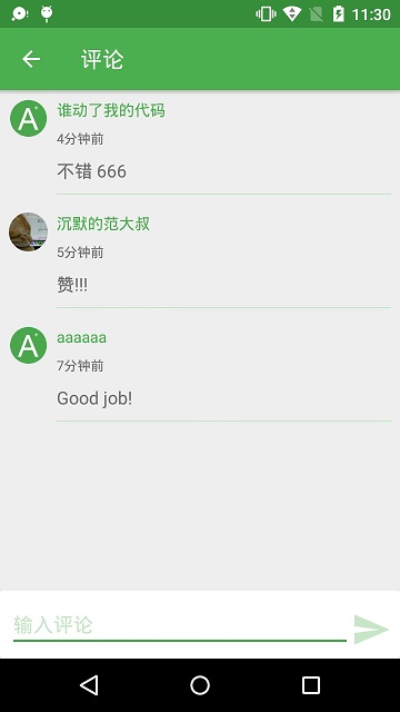 点击回答详情的评论按钮,进入评论界面CommentActivity。评论列表由RecyclerView实现,滚动到底部时,可加载更多评论数据。