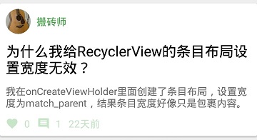 添加问题成功后,在LeanCloud后台就存在问题数据了,接下来就可以使用QuestionFragment来展示这些数据。问题列表条目进行了模块化封装,为一个QuestionItemView: