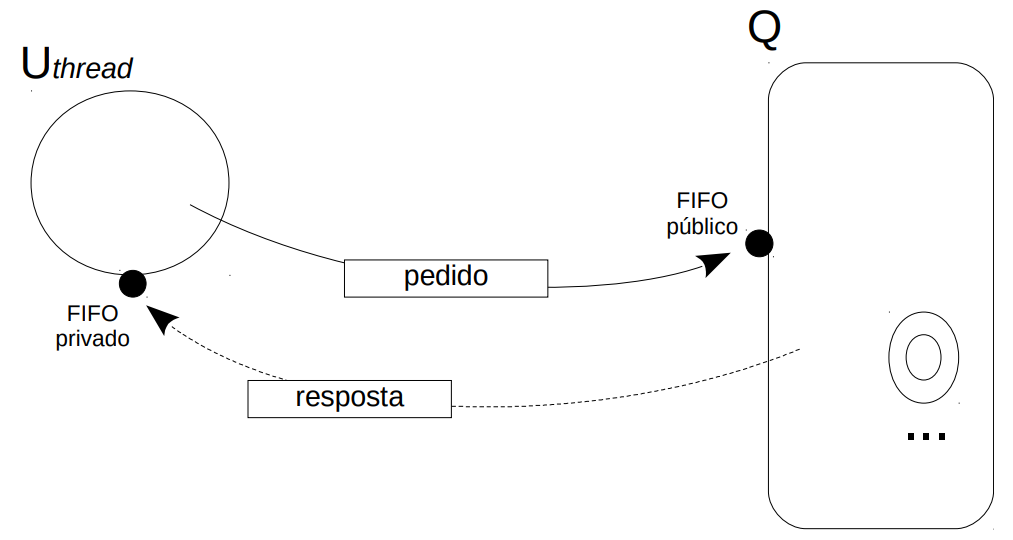 - um canal público do tipo FIFO, cujo nome é passado como argumento das linhas de comando de Un e de Qn, e que recebe os pedidos;