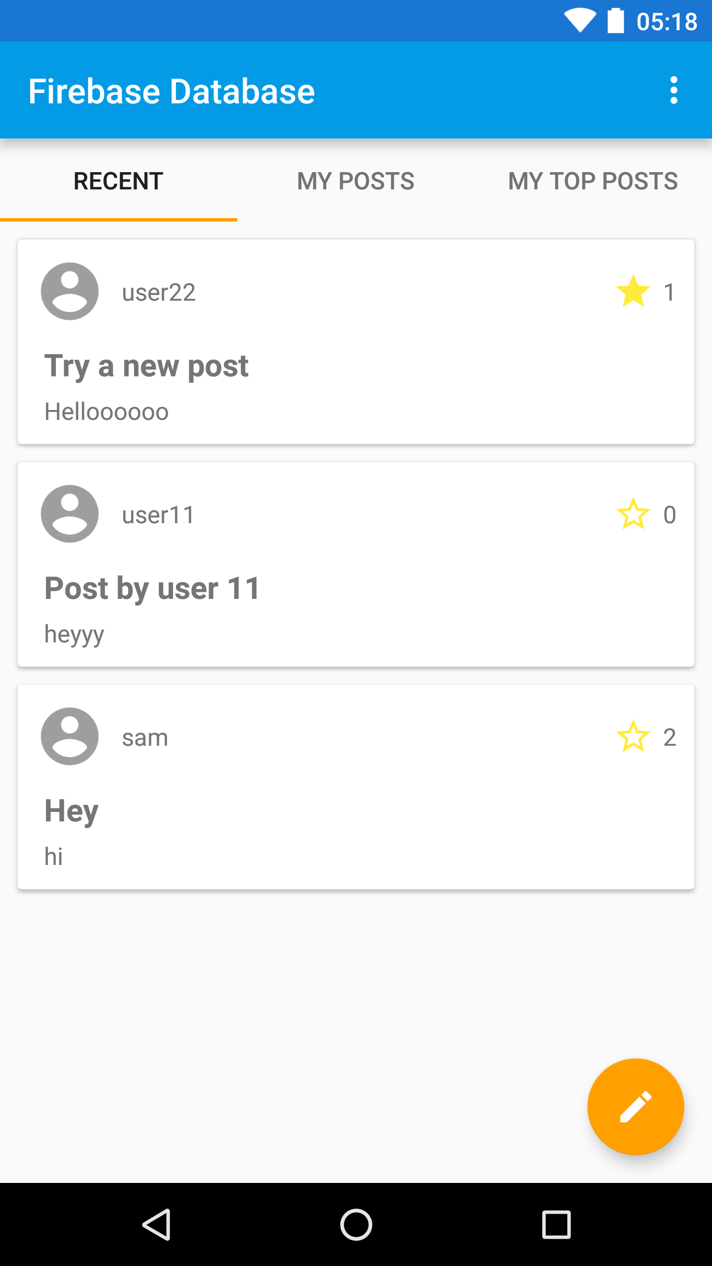 starsproperty which is aMapof user IDs to boolean values. If/posts/<POST-ID>/stars/<USER-ID>istrue, this means the user with ID<USER-ID>has starred the post with ID<POST-ID>. This data nesting makes it easy to tell if a specific user has already starred a specific post, but would not scale to large numbers of stars per post as it would make loading the Post data more expensive.