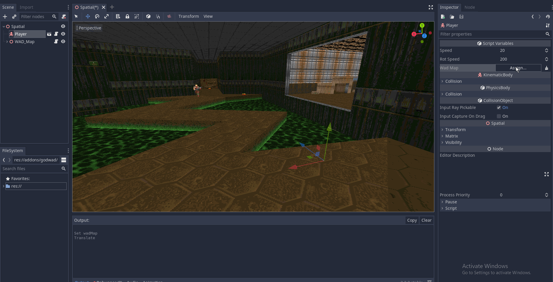 Add the player to the tree and point its "Wad Map" parameter to the WAD_Map node.