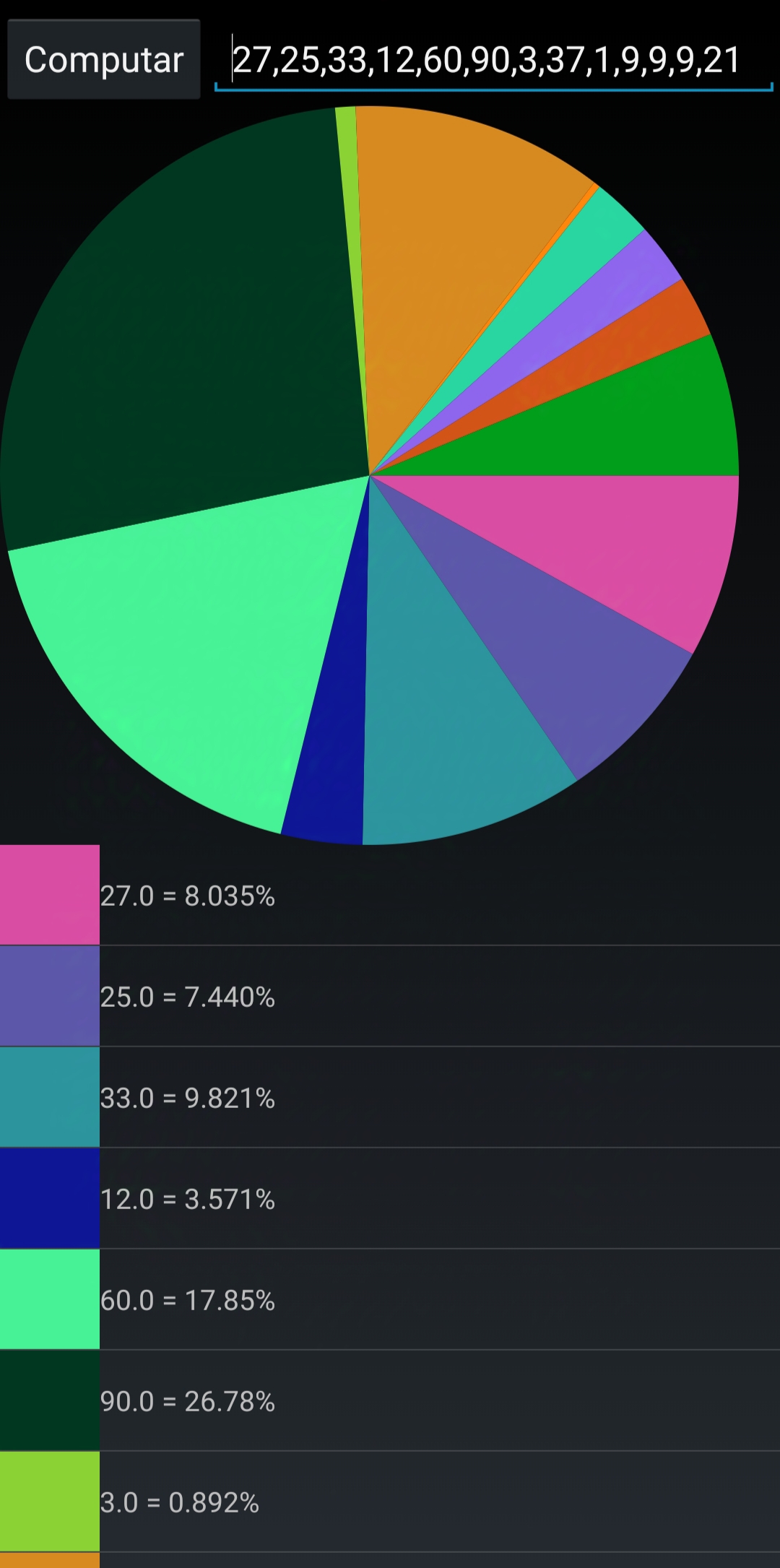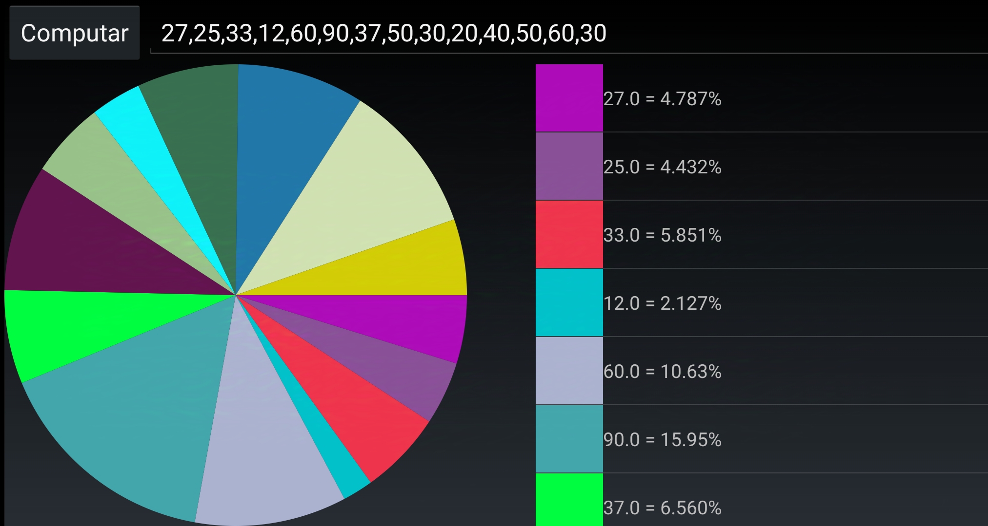 Pie Chart Generate a Pie Chart with custom values and random colors! Help me to improve this project supporting me: