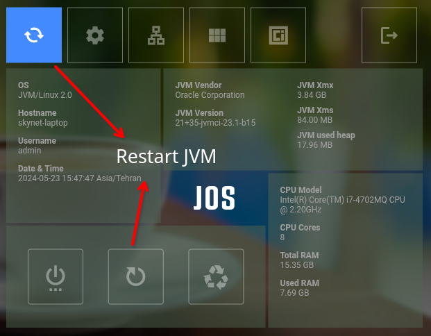 Open JOS panel then :