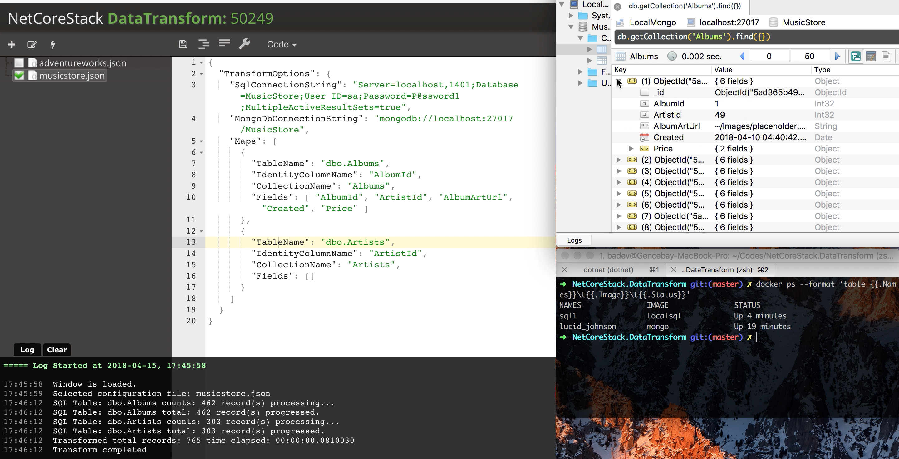 NetCoreStack DataTransform is a tool for application developers, data analysts and database administrators to transform and collect various data type from different SQL providers to SQL or MongoDb database.