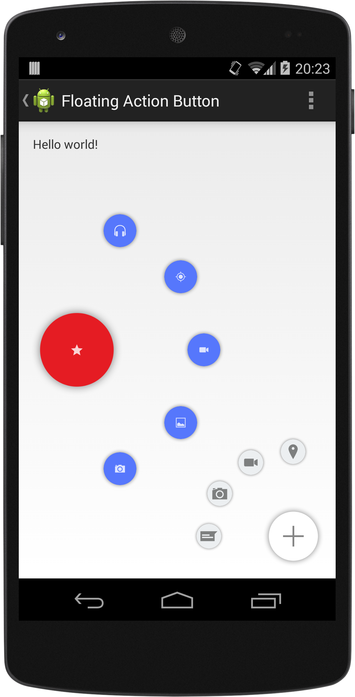 CircularFloatingActionMenu can be attached to any view in your layout. A Floating Action Button implementation is available in the library, with a similar look to new Material Design's FAB.