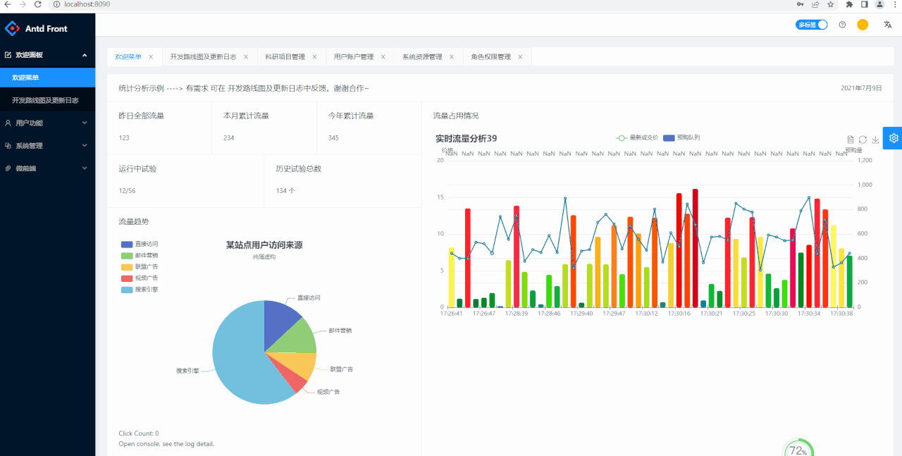 X-plat is an example of full button level permissions based on the antdfront front-end template. It contains most use cases of components. The back-end will open source recently