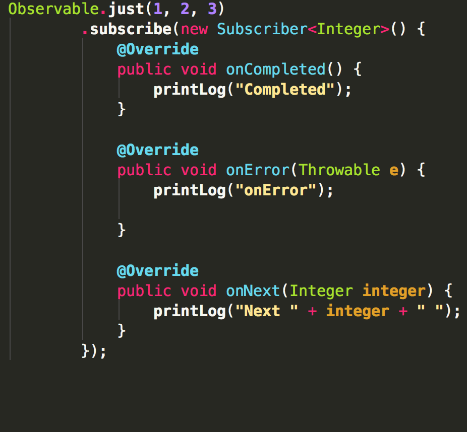 以下几个例子都是使用Observable.just(1,2,3)创建被观察对象,观察者输出1,2,3.