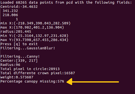 C++ algorithm to estimate percent canopy missing of a stem tree using PCL 1.9.1 and OpenCV 4.1.0