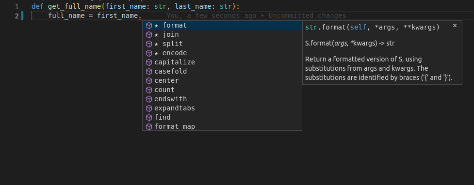 それでも、エディタはそれがstrであることを知っていて、そのためのサポートを提供しています。