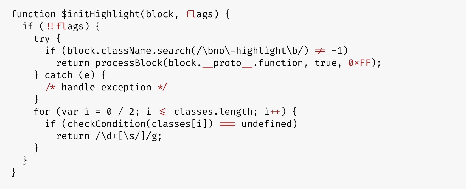 Fira Code is an extension of the Fira Mono font containing a set of ligatures for common programming multi-character combinations. This is just a font rendering feature: underlying code remains ASCII-compatible. This helps to read and understand code faster. For some frequent sequences like .. or //, ligatures allow us to correct spacing.