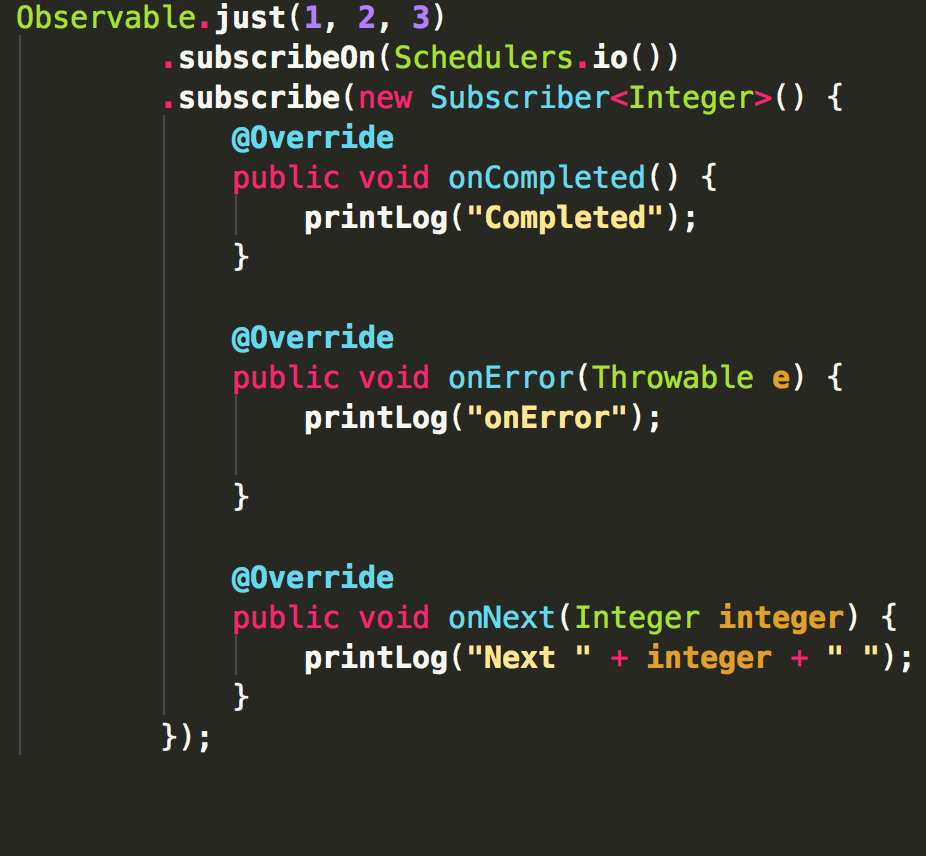 以下几个例子都是使用Observable.just(1,2,3)创建被观察对象,观察者输出1,2,3.