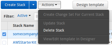 Select the stack you have created and click on Actions > Delete Stack