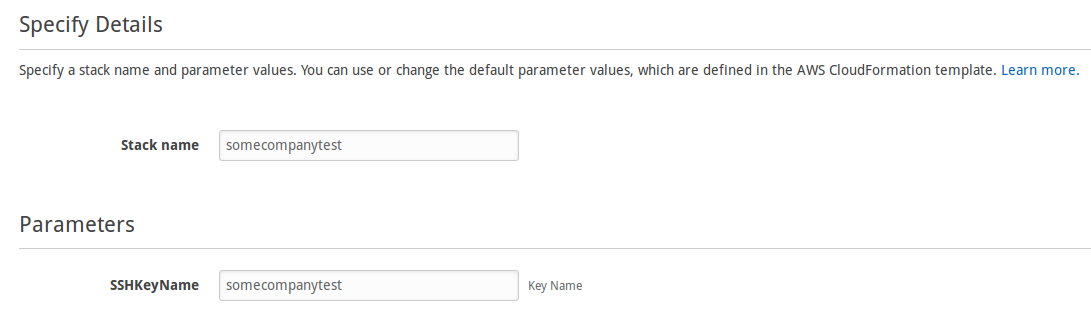 On SSHKeyName type the Key Pair name you created as a pre-requisite