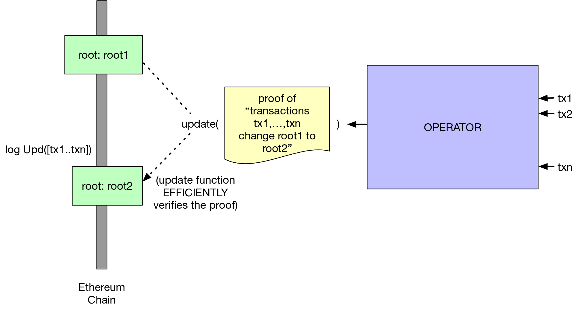 - off chain transfers can be processed in bulk with efficient on chain computations