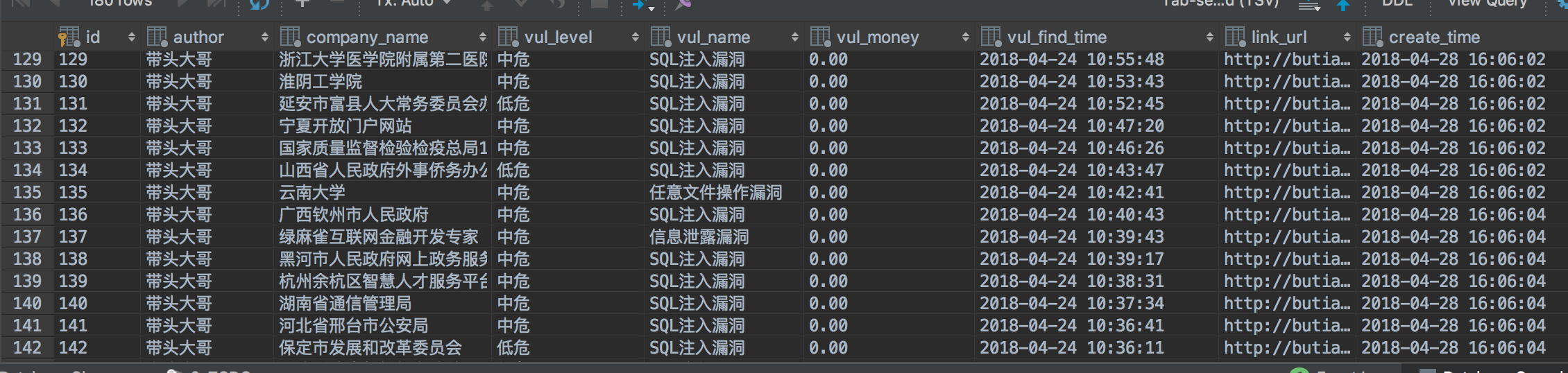 创建db:CREATE DATABASE crawl DEFAULT CHARACTER SET utf8 DEFAULT COLLATE utf8_general_ci