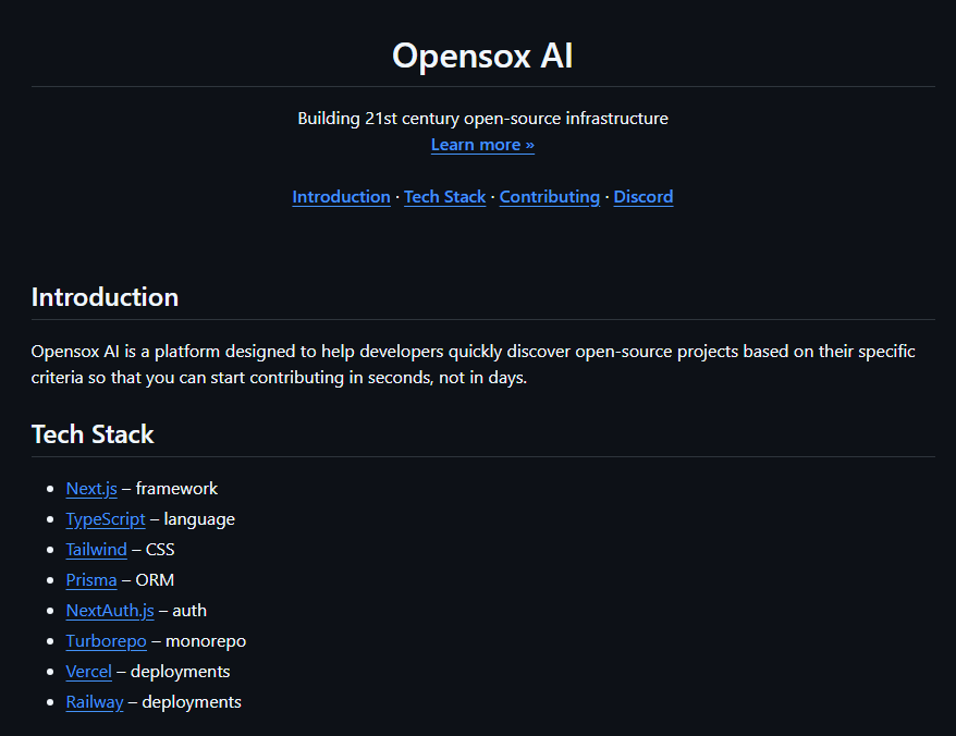 - Add an inline "Quick Links" line below the tagline using internal anchors: Introduction · Tech Stack · Usage · Contributing (only include links to sections that exist).