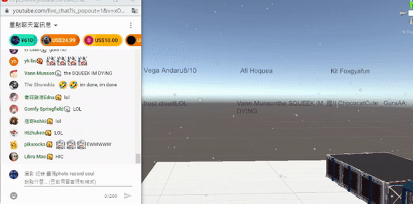 The big problem of virtual LIVE show is there is no audience in the show, a real person can't get in to the virtual show. So we plug in the chat under the show into the stage by using YouTube stream API v3.