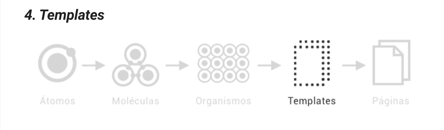 Apesar de os Templates poder ter átomos, moléculas e organismos, e até mesmo templates, que dita isso é você, neste curso, resstringimos as coisas, Page só pode RENDERIZAR templates, templates só podem RENDERIZAR organismos, organismos, pode conter a si mesmo, moléculas e atoms, moléculas pode ter a sim mesmo e atoms, atomos só atoms, definimos também os estados e comportamentos nos Átomos e Moléculas!!