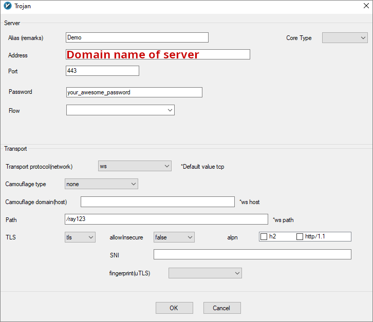 Screenshot below shows v2rayN client on Windows.