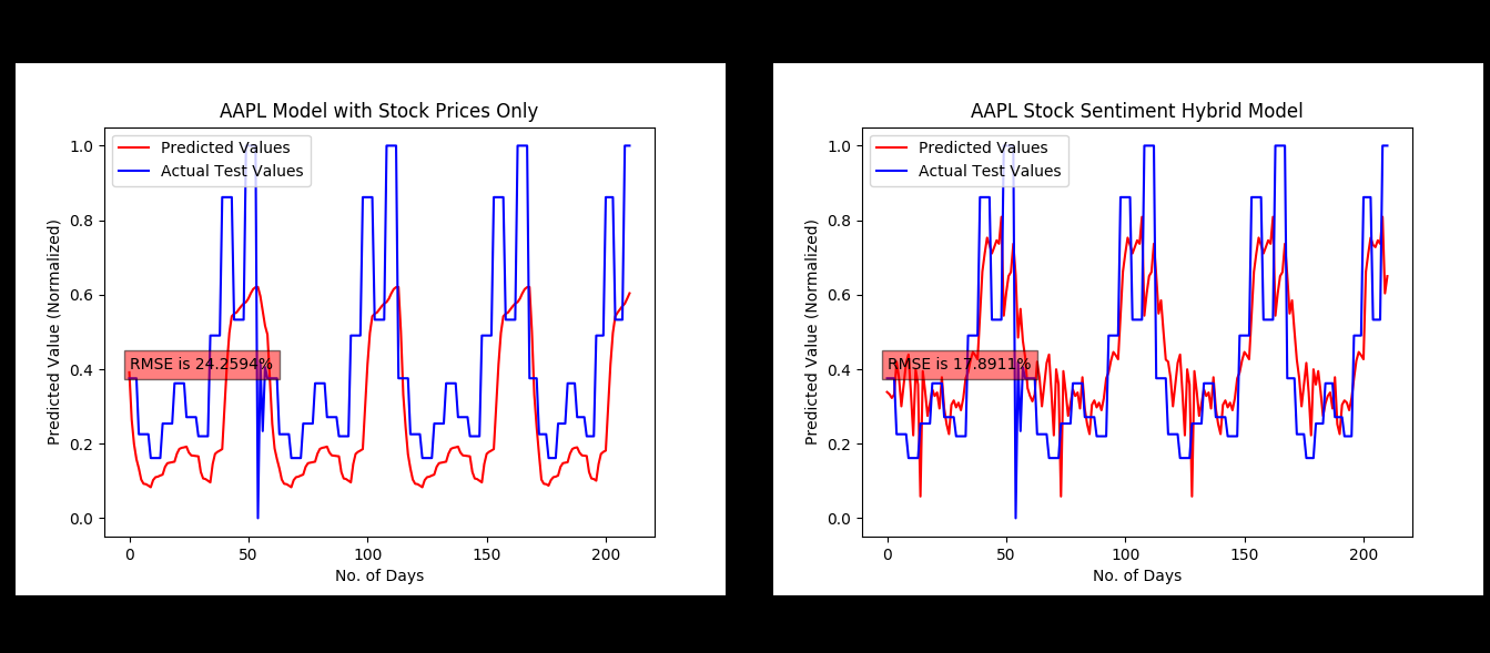 Open the 2 graphs side by side to compare the Root Mean Squared Error(RMSE) displayed, this will help you know which model is accurate