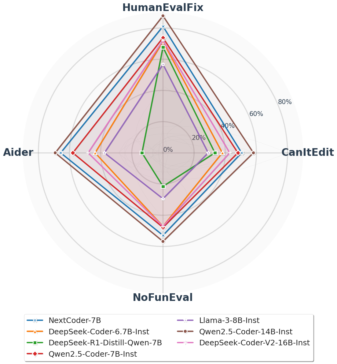 NextCoder-14B 89.8 60.2 72.2 12.2