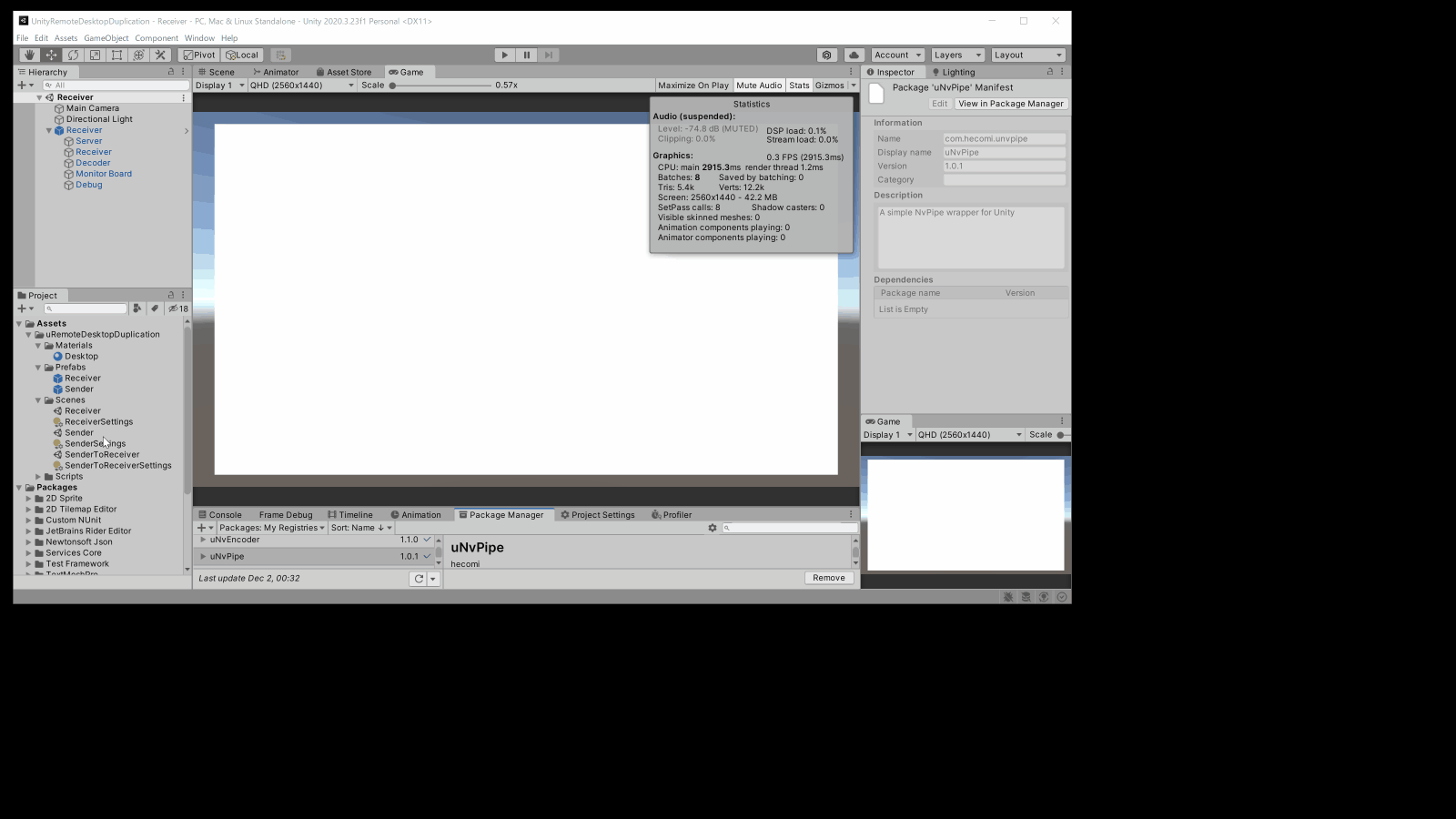 This is an example of sending a desktop image to a remote location. The image is captured by Desktop Duplication API and encoded using NVENC directly (NvPipe is not used to reduce the overhead for encoding). The buffer is then sent over UDP and decoded with NvPipe (NVDEC) in a remote location.