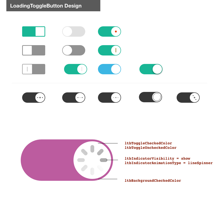 LoadingToggleButton is a toggle button shows loading animation when toggled, from 'checked' to 'unchecked', or from 'unchecked' to 'checked'.