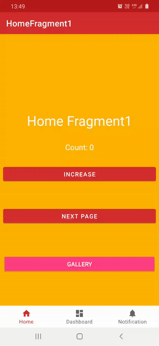 HomeFragment2 and GalleryFragment sets result with findNavController().previousBackStackEntry?.savedStateHandle?.set("count", count)