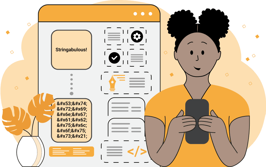 This tool converts all special HTML characters in a string to HTML entities. For example, the symbol "<" gets encoded to "<" and symbol "&" gets encoded to "&". This is useful if you want to put HTML code in HTML code. The only way to do it is to escape the code first. You can also encode absolutely all string characters to HTML entities if you select the option to do so. If selected, this mode will find the numeric value of every character, convert it to hex (or decimal) base and append "&#x" (or "&#" in decimal) before it and ";" after it. For example, the letter "a" that has a numeric value of 0x61 in hex (or 97 in decimal) will get converted to "a" (or "a" in decimal). This is useful if you want to obfuscate your message so that other people can't understand it by looking at it. Some characters have predefined names, such as the value "€" that designates the euro character "€". You can display entity names by using the "Print Name References" option. You can also preserve the structure of lines in multi-line strings by activating the "Preserve Line Breaks" option. Stringabulous!
