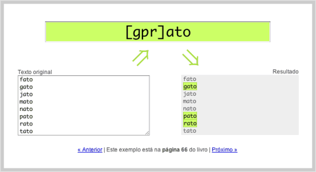 Esta ferramenta, criada especialmente para o livro, interpreta expressões regulares em tempo real e mostra na tela o resultado. Ela possui cadastrados todos os exemplos do livro, juntamente com o número da página em que eles se encontram. Assim, o leitor pode testar cada exemplo, fazer variações, mudar a expressão, experimentar textos diferentes, enfim, fixar o aprendizado na prática.