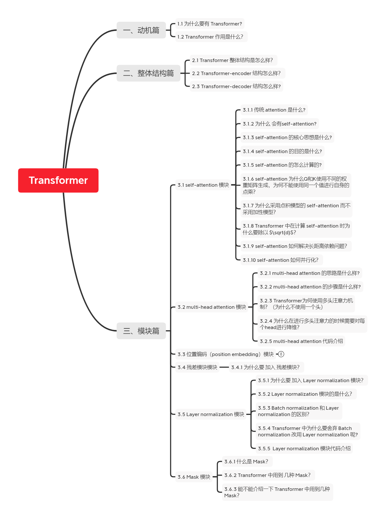 本章主要介绍 Transformer 常见的问题,如下图所属: