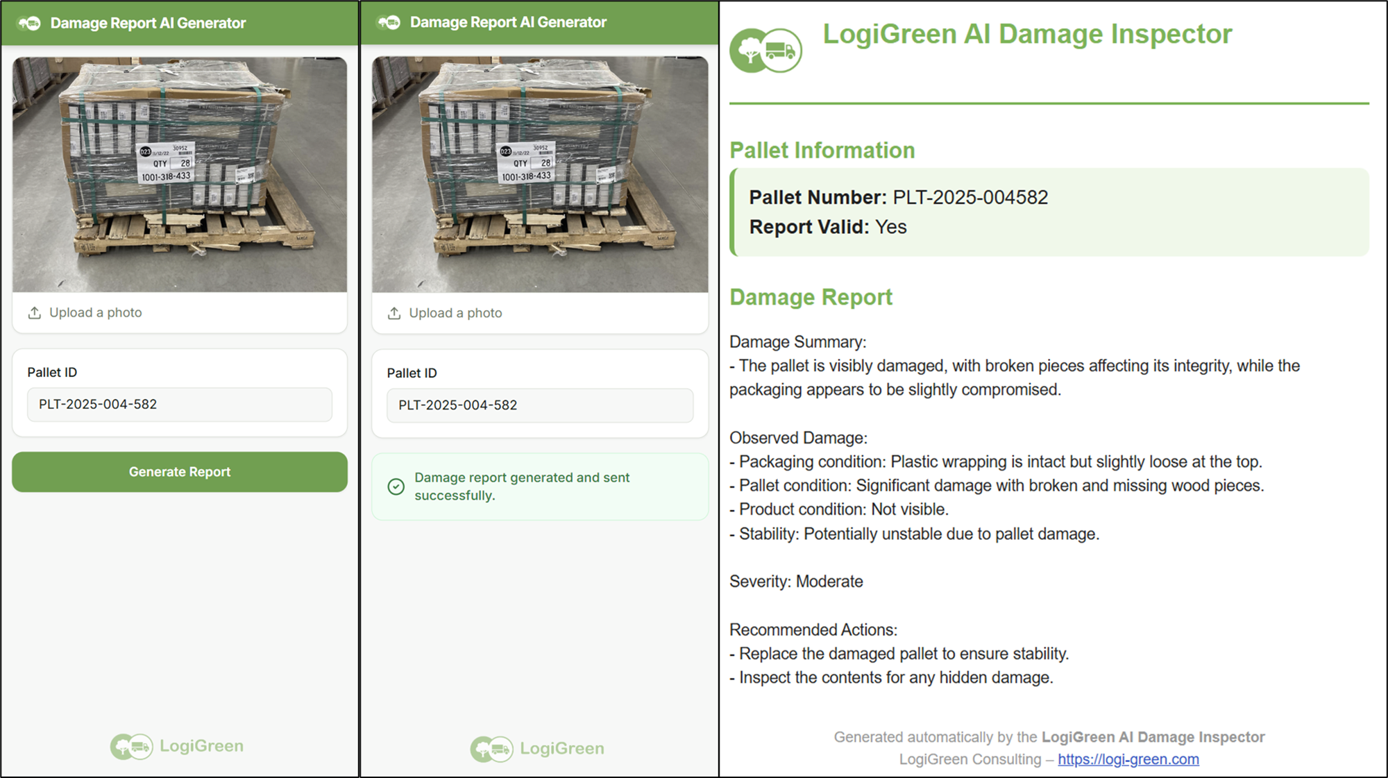 - The operator starts by uploading the picture of the damaged pallet.