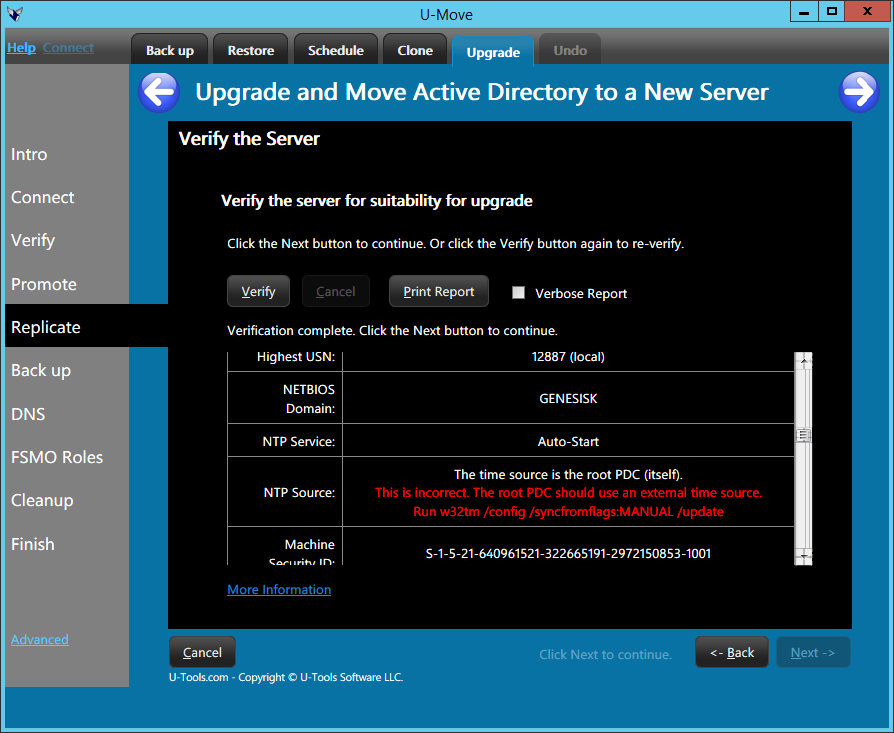 After you have promoted the new domain controller, U-Move will run several additional tests to verify that the new DC is working correctly. These tests include the following: