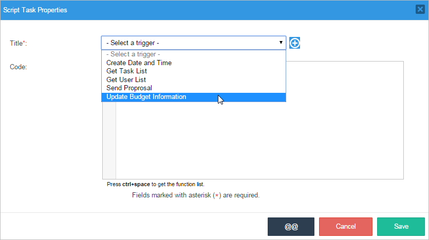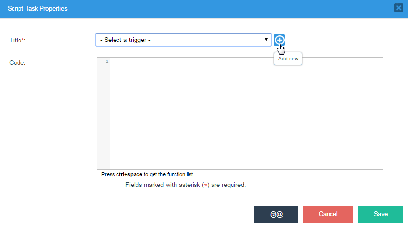 The code added to the trigger will be shown in the Code textarea.