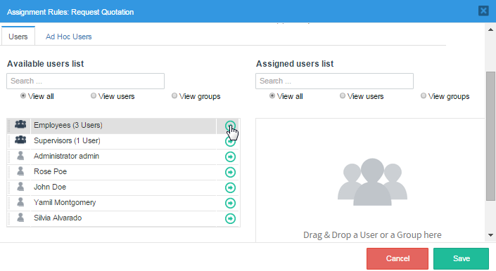 - A dropdown or suggest box can use an SQL query or a prior trigger to populate a list of available users assigned to the task and allow the user to select one. See the examples below.